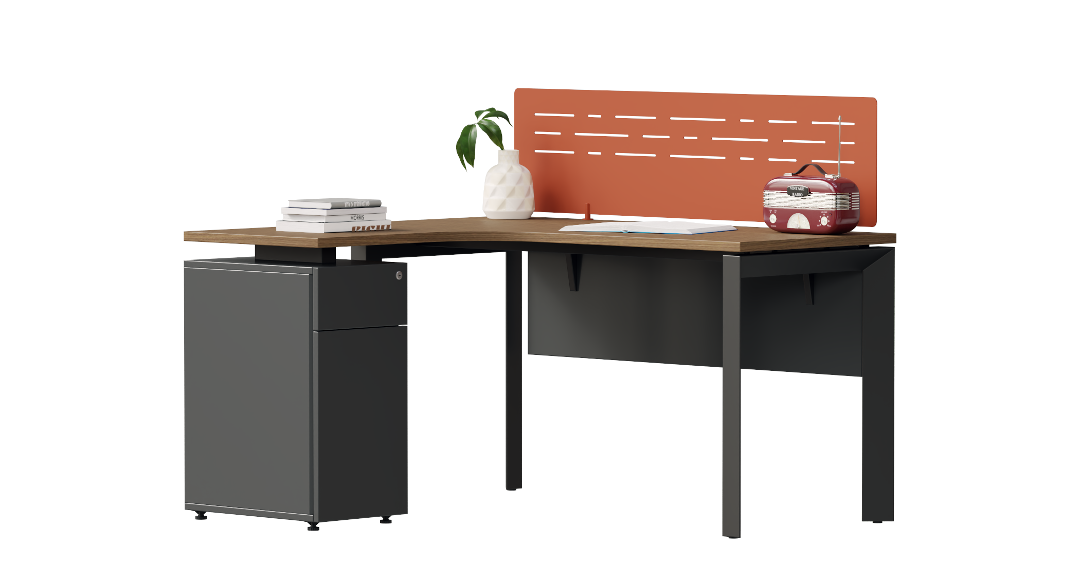 Phiên bản bàn nhân viên TALENT với tủ nối liền được thiết kế dành cho những không gian đề cao tính tiện dụng và thẩm mỹ. Tủ liền bàn không chỉ giúp lưu trữ tài liệu gọn gàng mà còn đóng vai trò như điểm tựa cân bằng, tạo nên bố cục hài hòa cho tổng thể bàn.