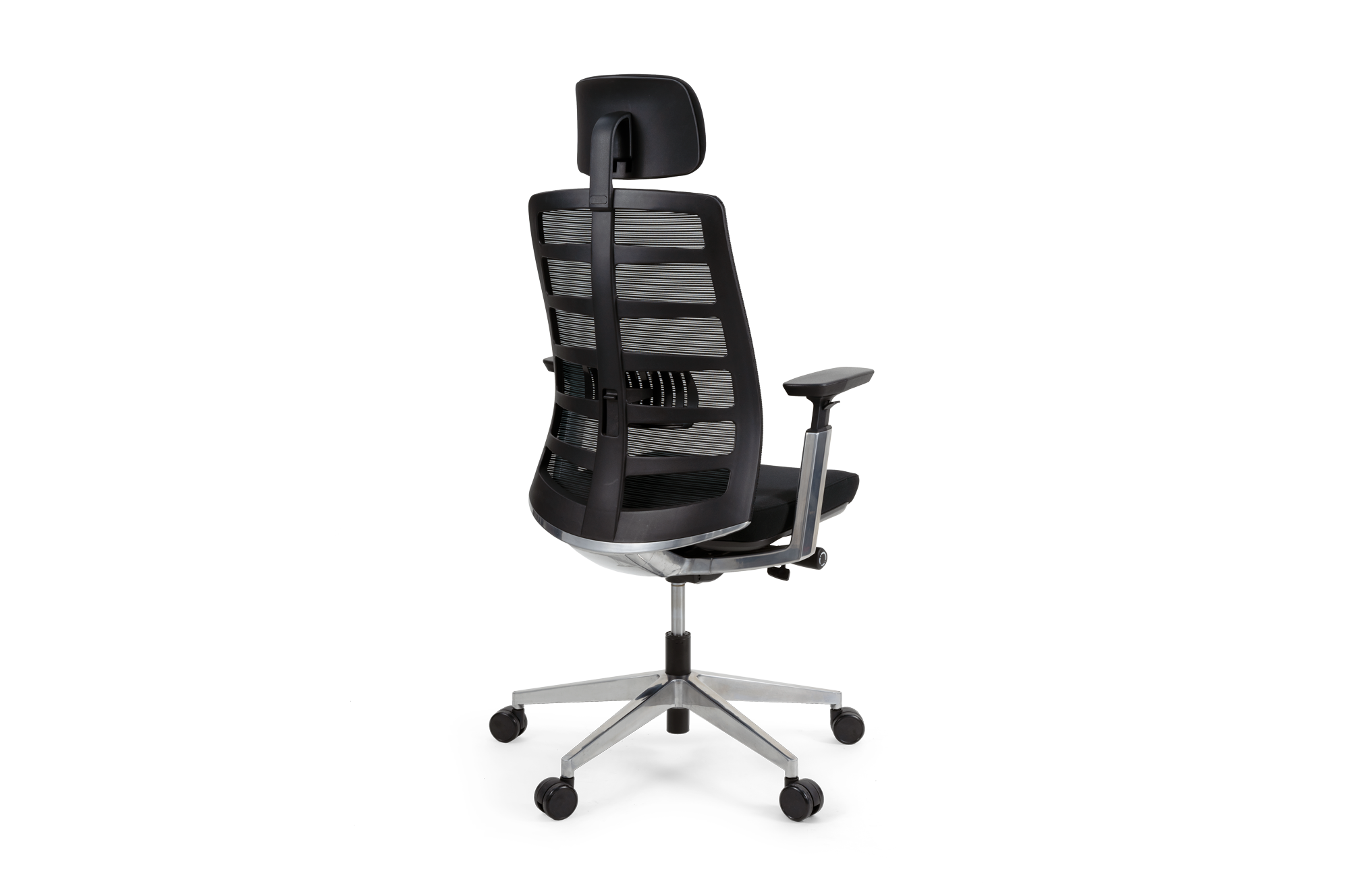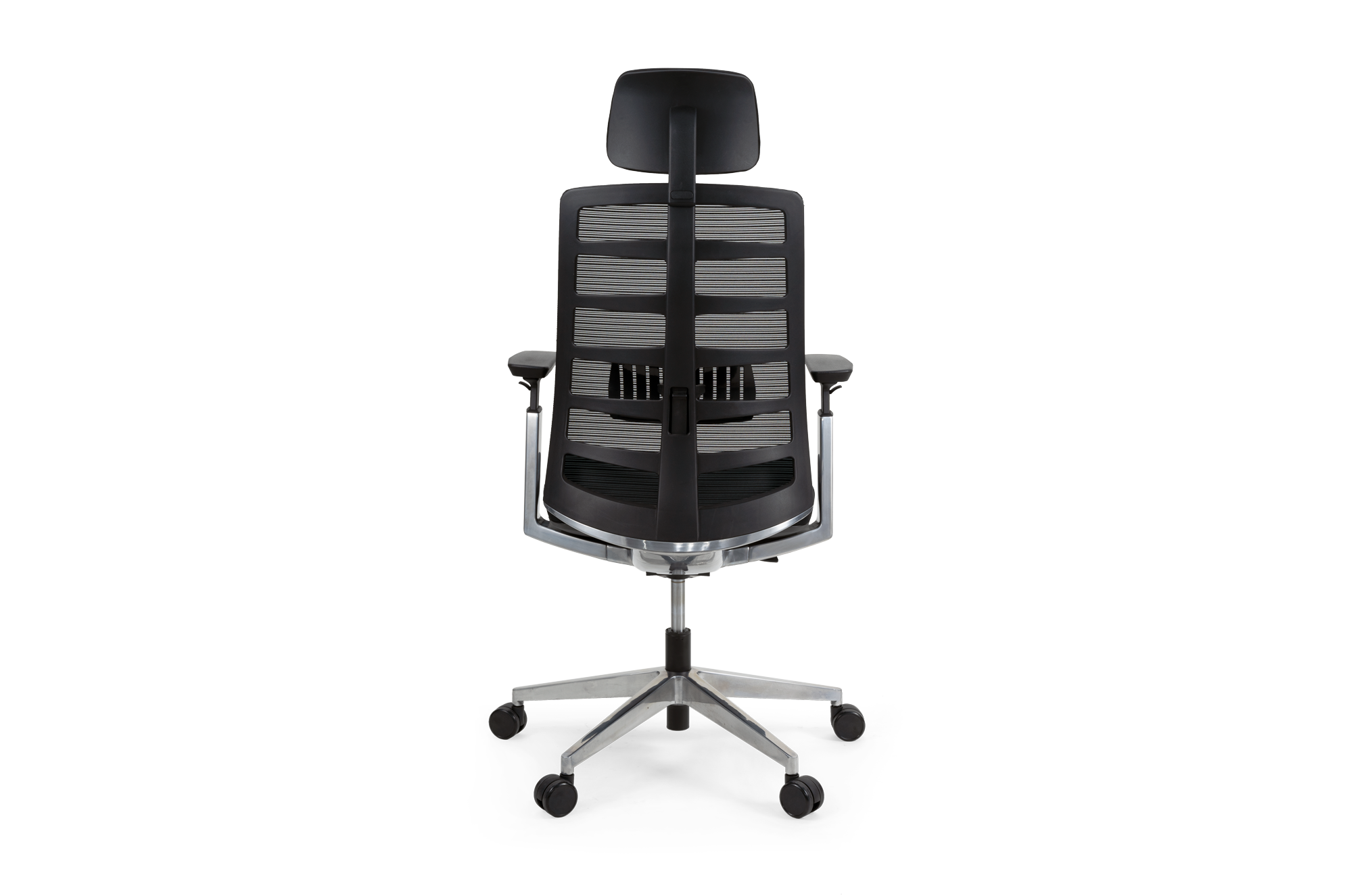 Phần lưng ghế được thiết kế theo đường cong tự nhiên của cột sống, ôm sát vùng lưng dưới và lưng giữa nhằm hỗ trợ tối đa tư thế ngồi đúng chuẩn. Thiết kế công thái học này giúp phân tán áp lực đều lên phần lưng, giảm cảm giác mỏi khi ngồi lâu. Đường nét mềm mại nhưng chắc chắn không chỉ tăng tính thẩm mỹ mà còn góp phần nâng cao sự thoải mái, tạo nên trải nghiệm làm việc hiệu quả và bền bỉ mỗi ngày. Đây là yếu tố then chốt trong thiết kế ghế hiện đại dành cho văn phòng chuyên nghiệp.